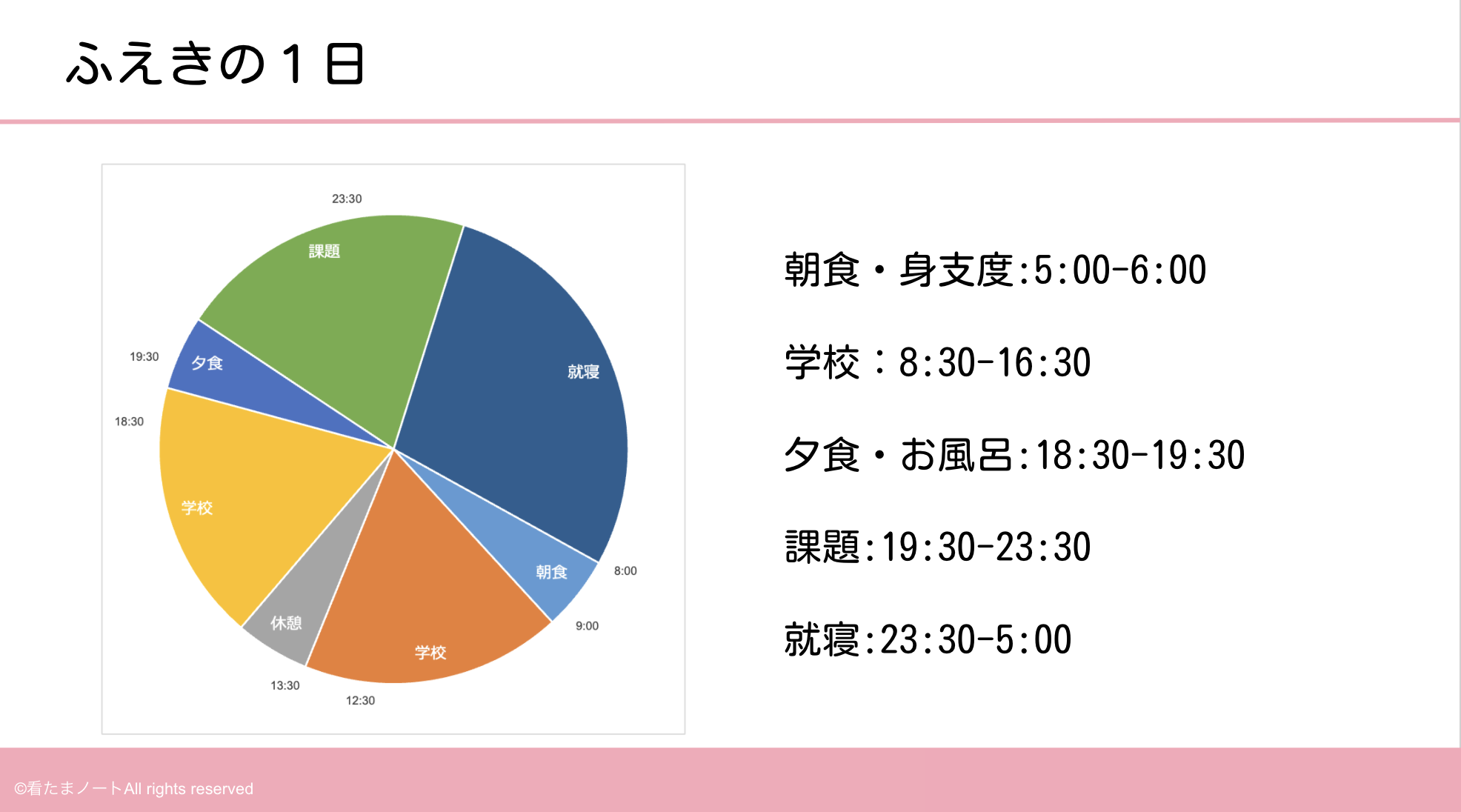 これは実習がある日のスケジュールです。実習がある日は朝が早い!慣れるまでは大変だけど、この生活に慣れると休日も早く起きてしまうことも。