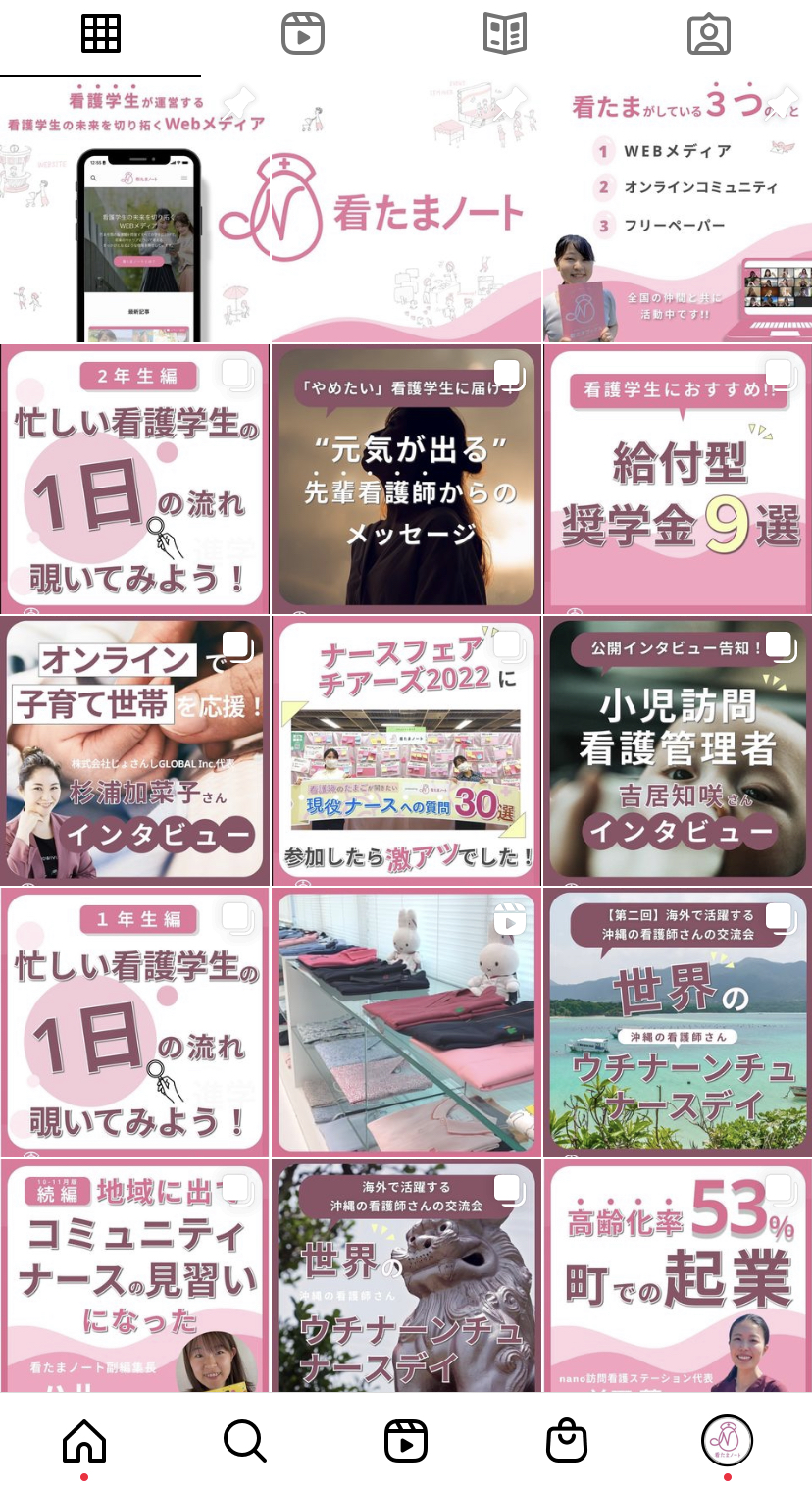 小林ひかりさん(https://twitter.com/pika1998_ )の協力を得て、Instagramを運営し始めました。看たまノートを知ってもらうこと・イベントに参加してもらうことが主な目的です。発信内容が看たまノート(WEB)に近いので、一つひとつの投稿が重ためですが、より多くの方に楽しんでもらえるように考えていきたいと思います✨
