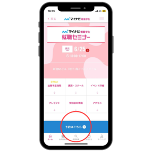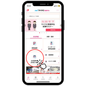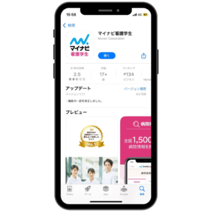 「マイナビ看護学生」のアプリをインストールし、アプリを開きます。