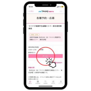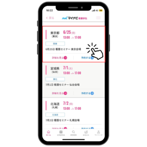 下にスクロールしていくと、画面のように「6月25日 看護セミナー東京会場」が見つけられます。