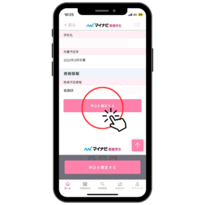 基本情報の記入が終わったら、『申し込みを確定』をクリックします。これで、申し込み完了です!合同説明会当日までにしっかり準備をしておきましょう。